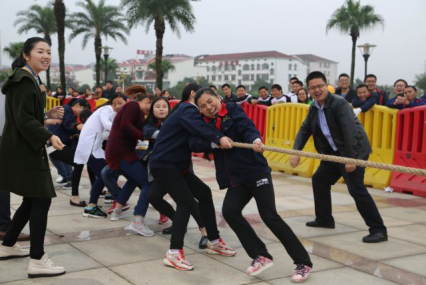 隨著哨聲一響,拔河比賽正式開始,爾康的運動員們雙手握緊長繩,咬緊牙關向后拉,為了把握節奏形成合力,運動員們口中一起高呼著“一二、一二”,和場上的加油助威聲遙相呼應。每向后贏得一步,運動員們都拼盡全力,經過同心協力頑強拼搏,爾康制藥男子隊在36支隊伍中成功晉級前八強。
