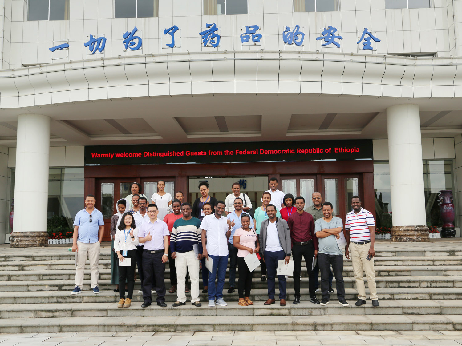 埃塞俄比亞學(xué)員在爾康制藥辦公樓前合影