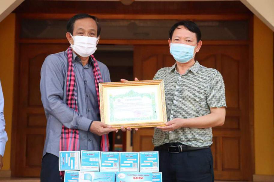 4月22日下午,爾康柬埔寨公司向柬埔寨馬德望省政府捐贈5000只口罩等防疫物資。馬德望省長原羅達和柬埔寨公司副總經理楊建平出席捐贈儀式。