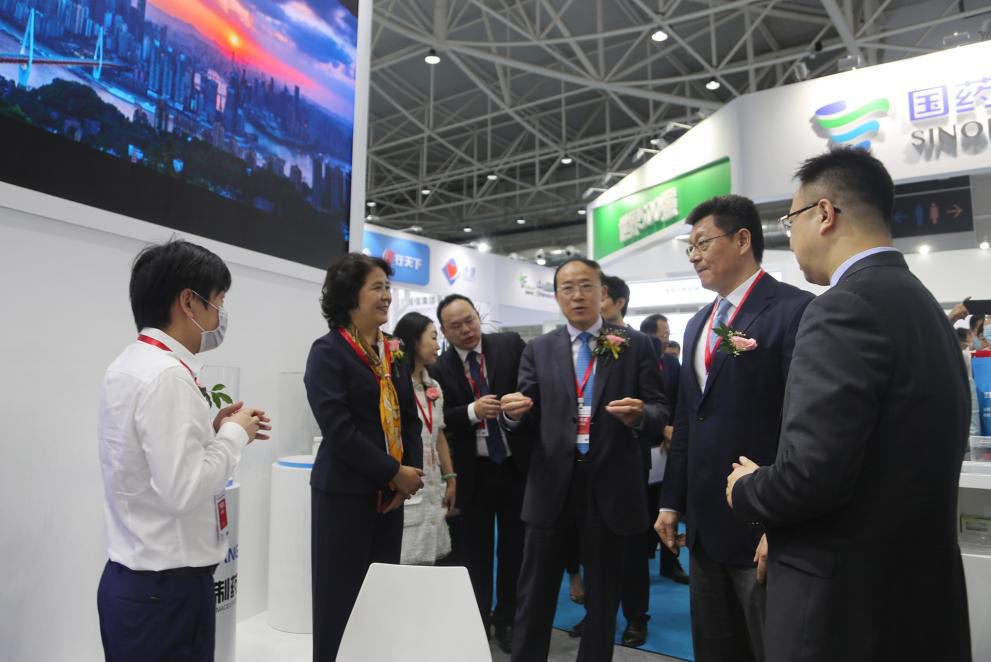 青島市委常委、市委宣傳部部長孫立杰,國藥集團黨委副書記、國藥勵展董事長楊柳一行參觀公司展位