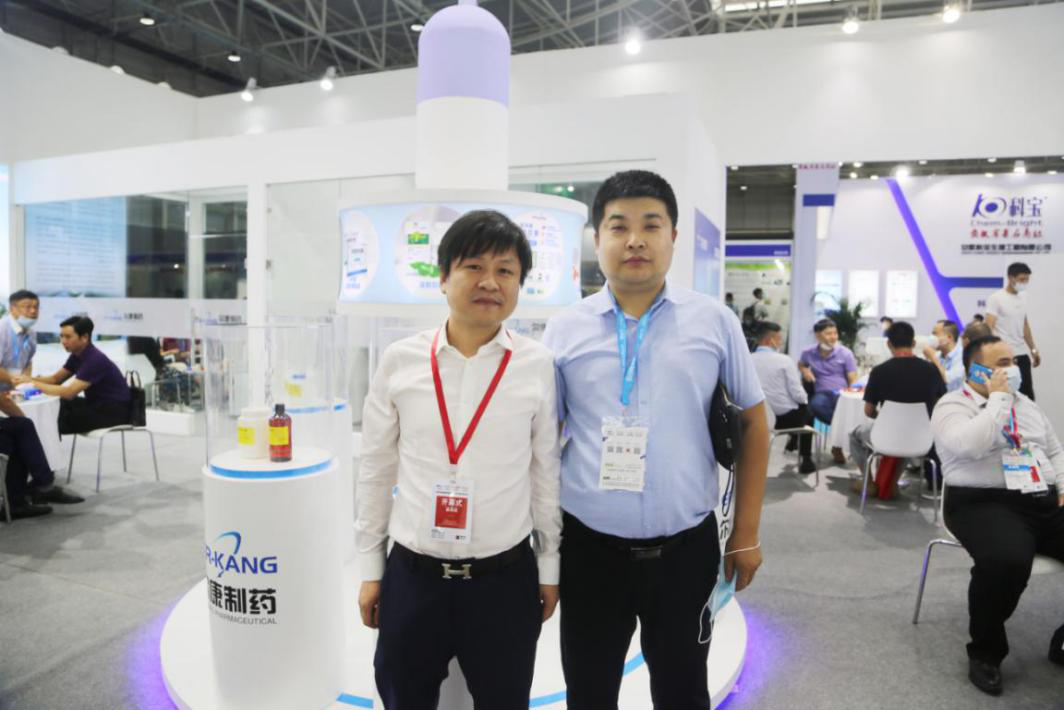 哈藥集團招標采購部副總監劉湘明(右)做客公司展位