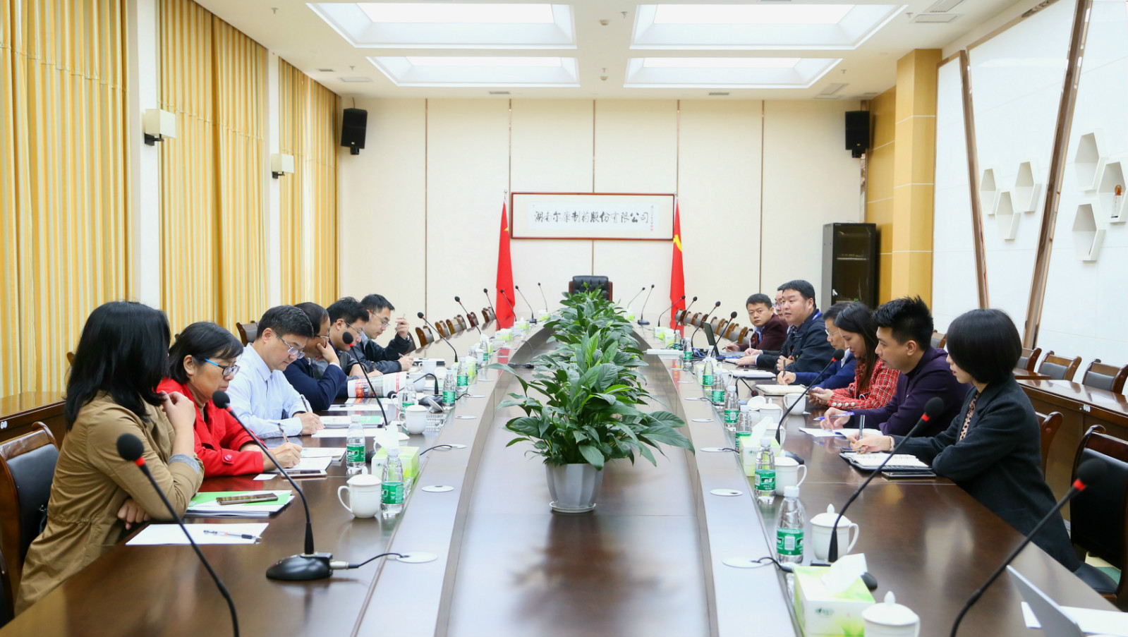 會上,帥維佳女士就爾康制藥原輔料、中醫藥、淀粉植物膠囊等業務的研發成果與發展動態進行詳細介紹,并就人才培養與儲備模式、產學研項目等方面與湖南農業大學考察團進行交流。