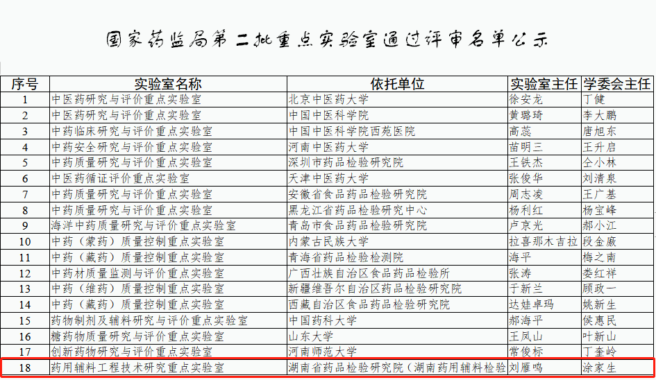 1月22日,國(guó)家藥品監(jiān)督管理局發(fā)布了《關(guān)于對(duì)第二批重點(diǎn)實(shí)驗(yàn)室名單進(jìn)行公示的通知》,藥用輔料工程技術(shù)研究重點(diǎn)實(shí)驗(yàn)室通過評(píng)審。